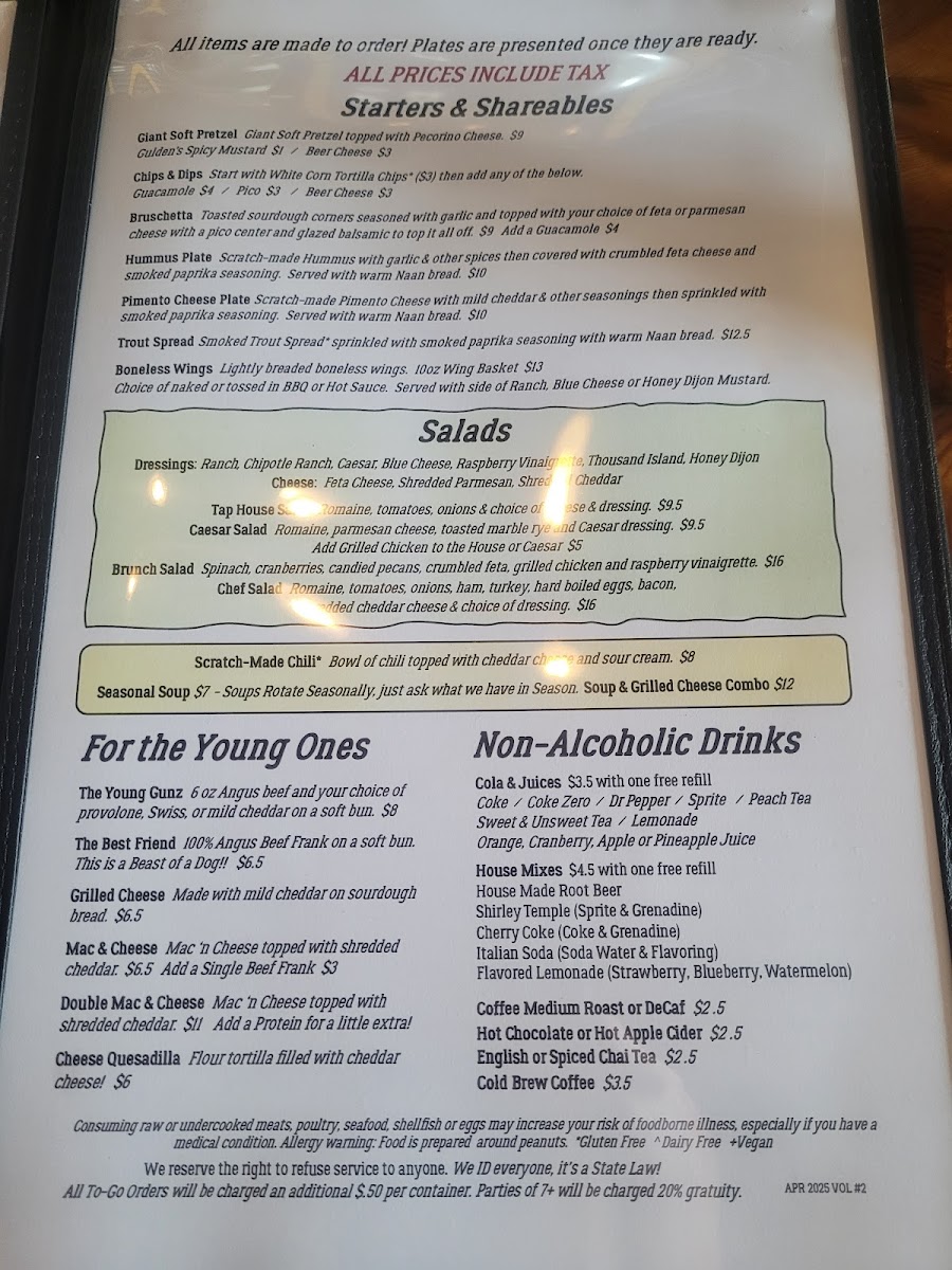 The Tap House salad or Caesar salad. $5